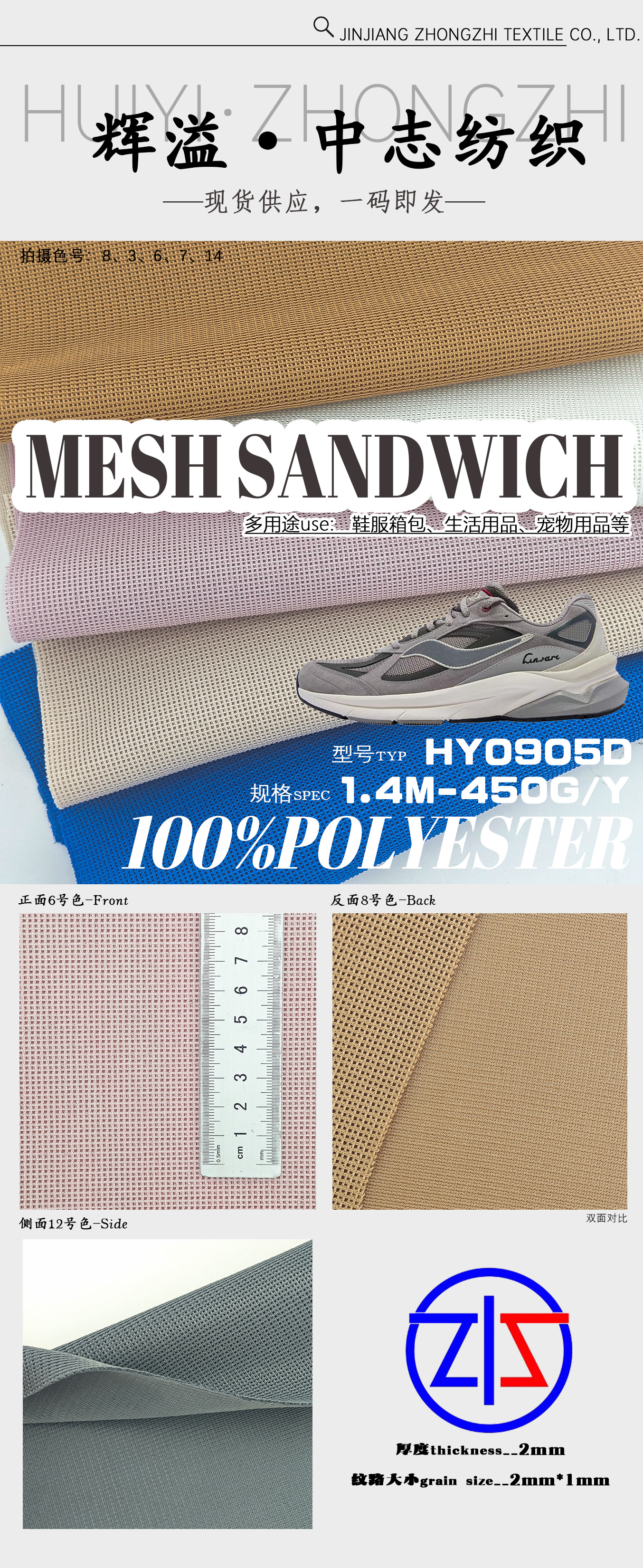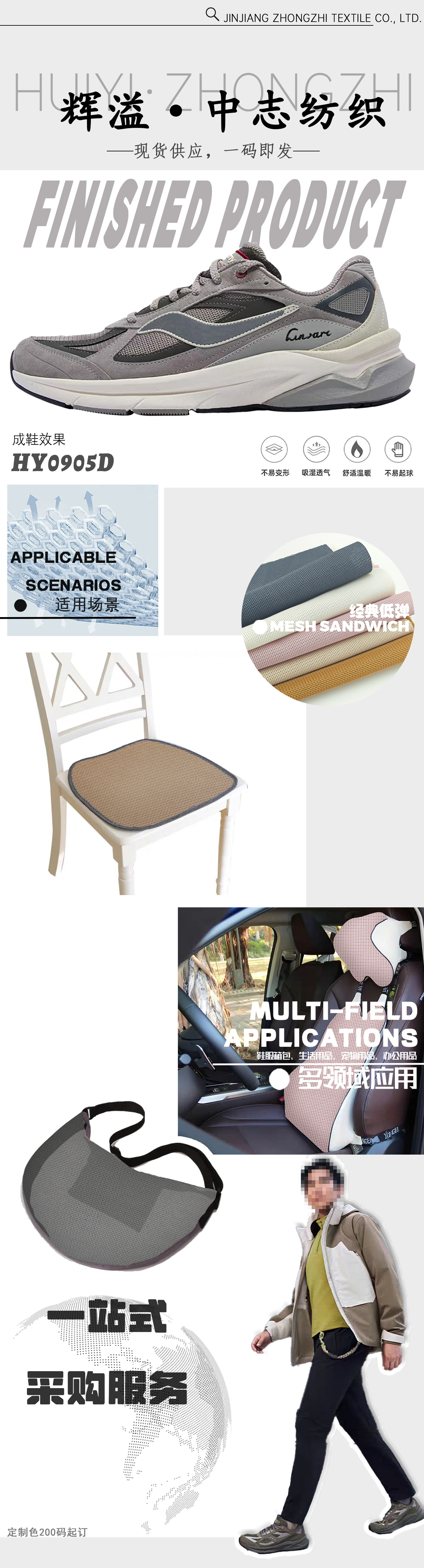 - Название товара: 100%-ный полиэстерный сэндвич-сетчатый материал для кроссовок — прочный, дышащий, легкий (HY0905D)