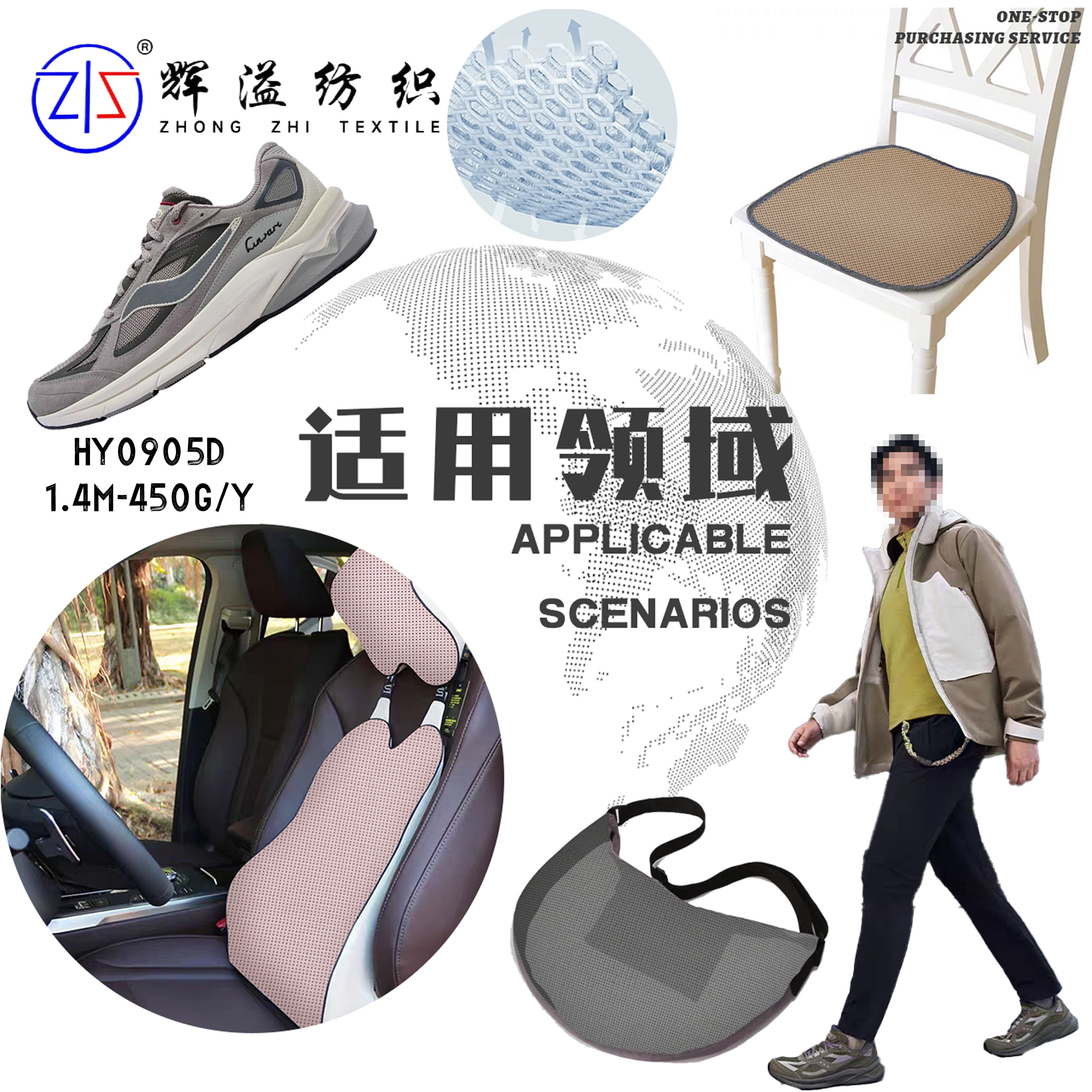 Может использоваться в дышащих домашних изделиях, таких как подушки-сиденья, стулья и т.д., где вентиляция имеет решающее значение.
