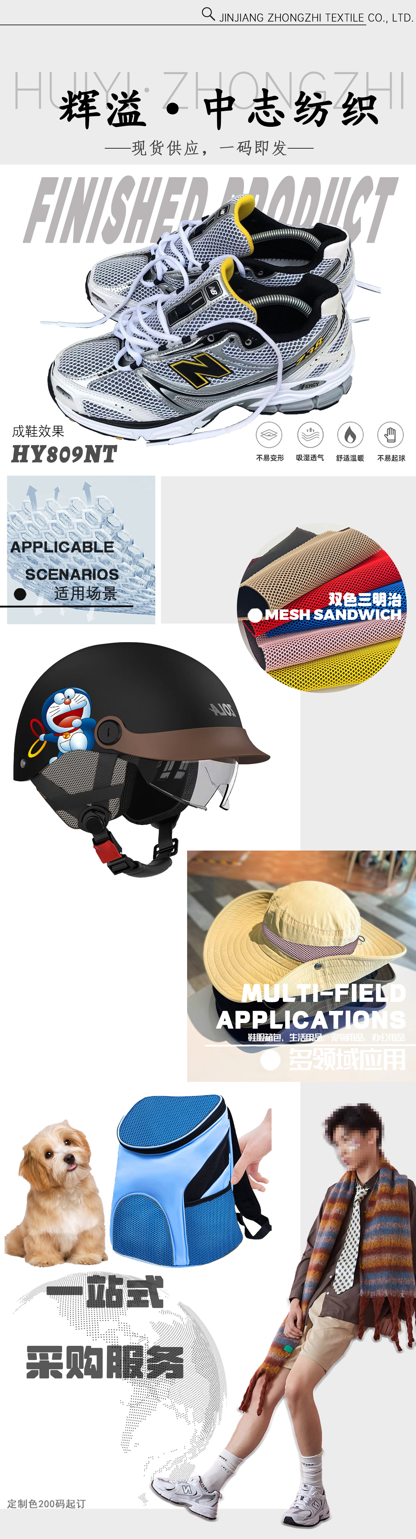 - Название товара: 100%-ный полиэстерный сэндвич-сетчатый материал, сэндвичная сетчатая ткань для беговых кроссовок — прочная, дышащая, легкая (HY809NT)
